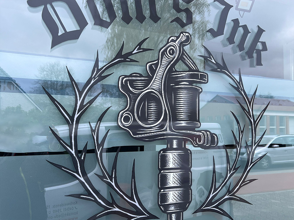 Dom´s Ink Tattoo – Glasdekorfolie & Fensterbeschriftung