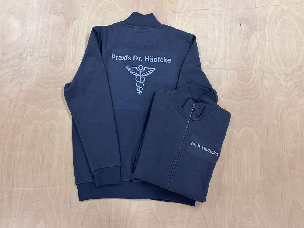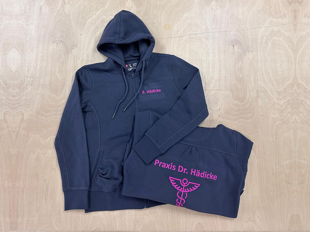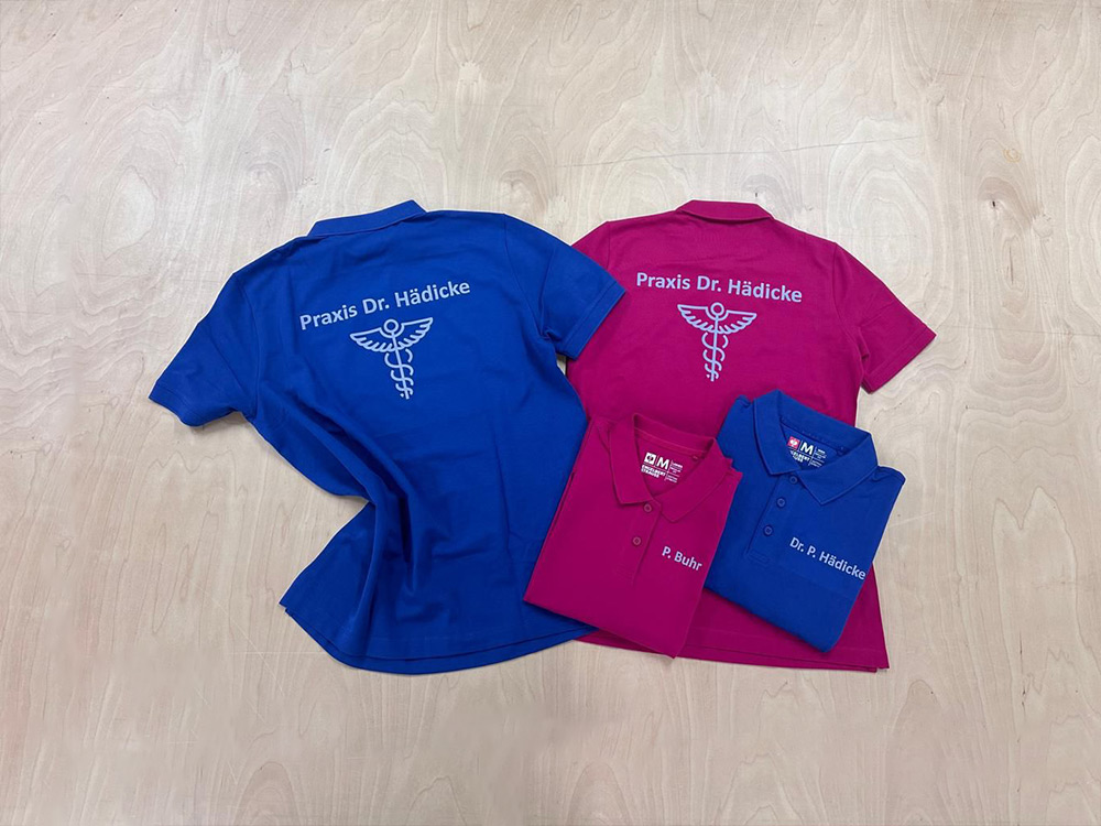 Einheitliches Outfit für das Praxisteam mit strapazierfähigen Flockmaterial.
