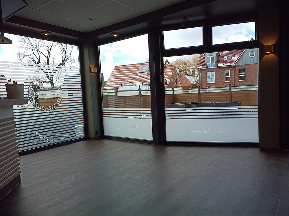 Die edle Glasdekorfolie, schön gestaltet, sorgt für eine angenehme Atmosphäre in Ihrem Restaurant und macht es zu einem Lieblingsplatz.