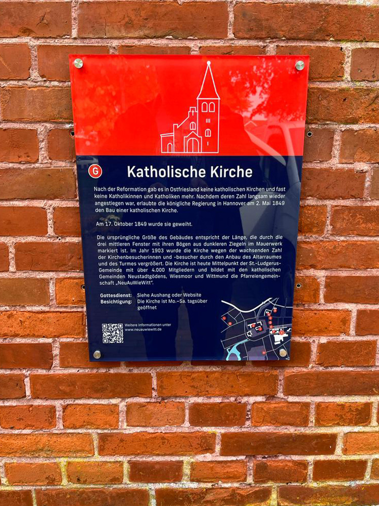 Hochwertigen Acrylschilder als Infotafeln für die Kulturmeile, befestigt mit Edelstahl Abstandshaltern.