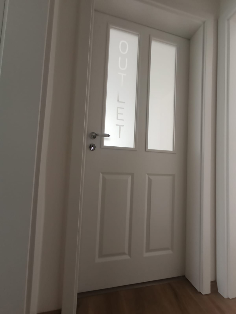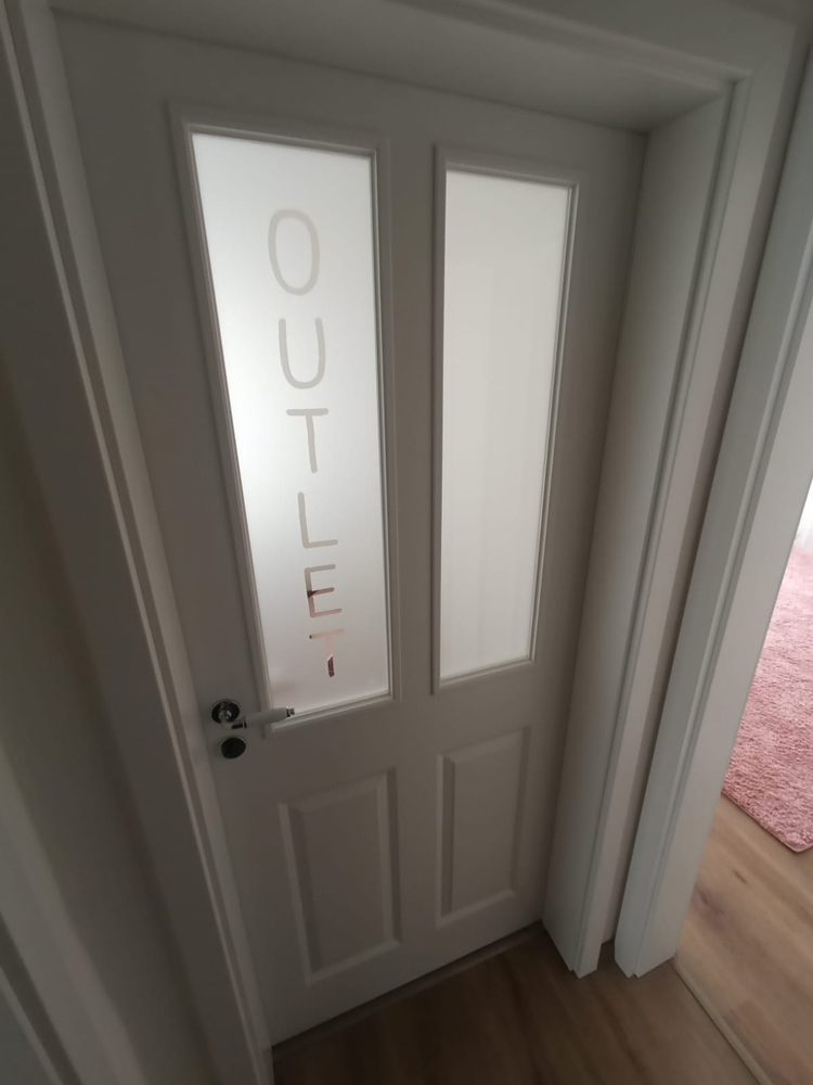 Glasdekorfolien mit ausgesparten Logo als Blickfang.